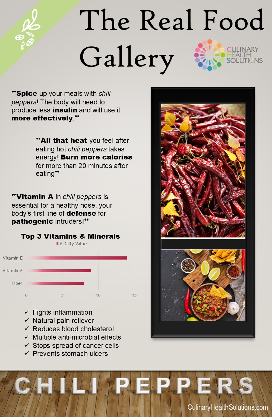 Chili peppers are available throughout the year to add zest to flavorful dishes around the world and health to those brave enough to risk their fiery heat.